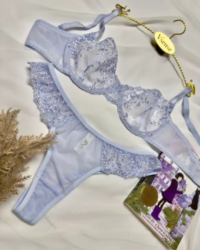 ست شورت و سوتین توری گل آبی کارن